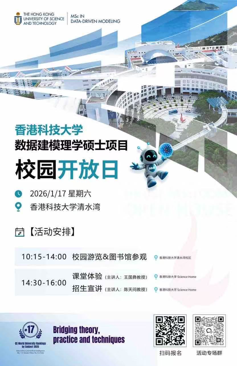 📣香港科技大学数据建模理学硕士学位项目MSc(DDM)校园开放日邀您亲临香港!